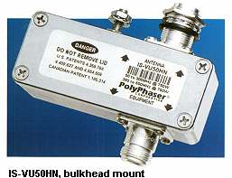 SPECIFICATIONS:Surge: 20kA IEC 1000-4-5 8/20µs Waveform 500 JoulesTurn-on: IS-VU50HN: 1800 Vdc Vt=1200V ISCU50HN: 1200Vdc Vt=1200V Turn-on Time: IS-VU50HN 1.5ns IS-CU50HNT 7ns VSWR:</= 1 .1 to 1 over frequency range Insertion Loss: </=0.ldB over frequency range Temperature: -25oC to +50oC Storage/Operating Vibration: 1G up to 100Hz ![]() ORDER INFORMATION:IS-VU50HN Throughput Energy 2.23mJ (typical)Frequency Range: 50 to 550MHz N female connector, bulkhead mounting Max. Power: 750W single channel* IS-CU50HN Throughput Energy: 2.23 mJ (typical) Frequency Range: 450 to 900MHz N female connector, bulkhead mounting Max. Power: 250W single channel* Add suffix: -MA for male antenna port connector. -ME for male equipment port connector. *See Appendix B Multi-Channel Capability Energy based on 6kV/3kA 8/20µs waveform. To speak to one of our consultants, please call us |