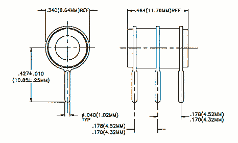 Dimensions: 0.46" long x 0.345"dia. x 021" lead length